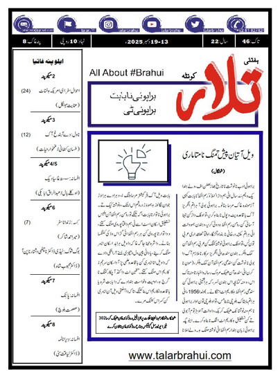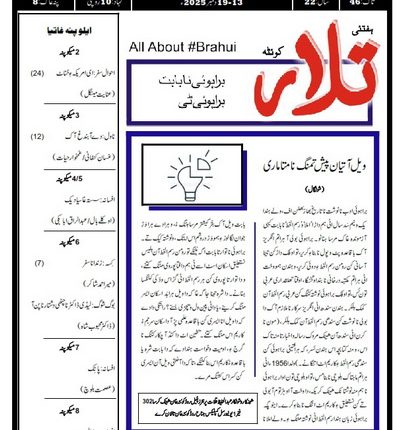 ہفتئی تلار 13-19 December 2025 By Hafeez Baloch Last updated Dec 22, 2025 0 Share Get real time updates directly on you device, subscribe now. Subscribe Download (PDF, Unknown) 0 Share FacebookTwitterGoogle+ReddItWhatsAppPinterestEmail