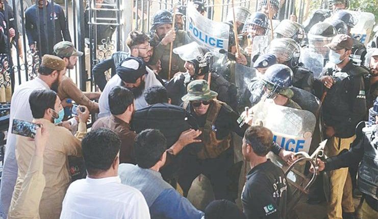 مقدمہ نا ٹِک آتیٹی پاننگانے کہ جمعہ نا دے بجٹ دیوان نا وخت آ اپوزیشن باسک آک تینا مخ تف آتتون اوار اسمبلی گیٹ ءِ زور اٹ بند کریر، پولیس کارندہ غاتتون چک و تاڑ کریر۔ جلہو کریر، کارندہ غاتا وردی تے ارّار، دا وخت آ پنچ پولیس کارندہ ٹھپی مسر۔