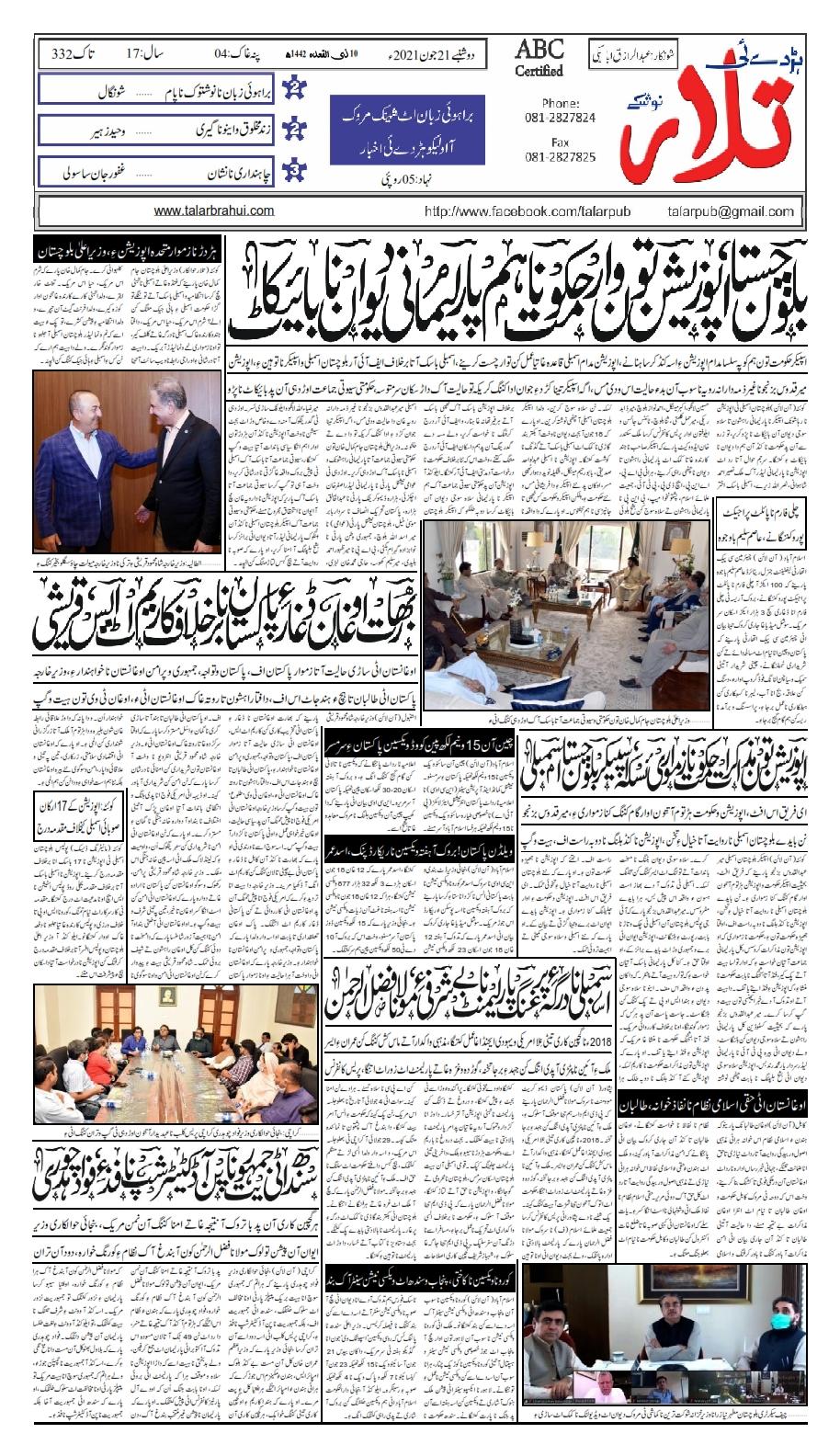ہڑدے ئی تلار 21 June 2021 By Hafeez Baloch On جون 21, 2021 0 Share Get real time updates directly on you device, subscribe now. Subscribe Download (PDF, Unknown) 0 Share FacebookTwitterGoogle+ReddItWhatsAppPinterestEmail