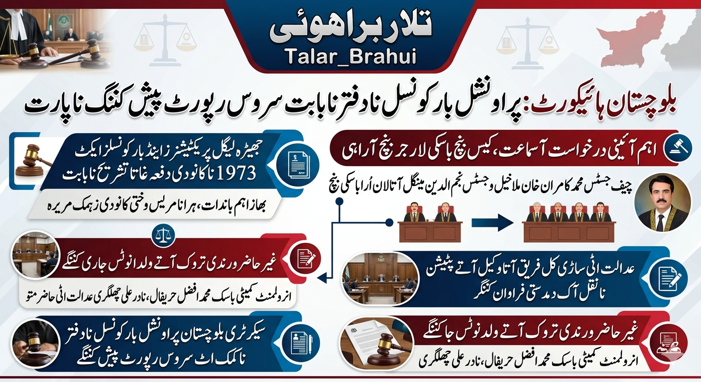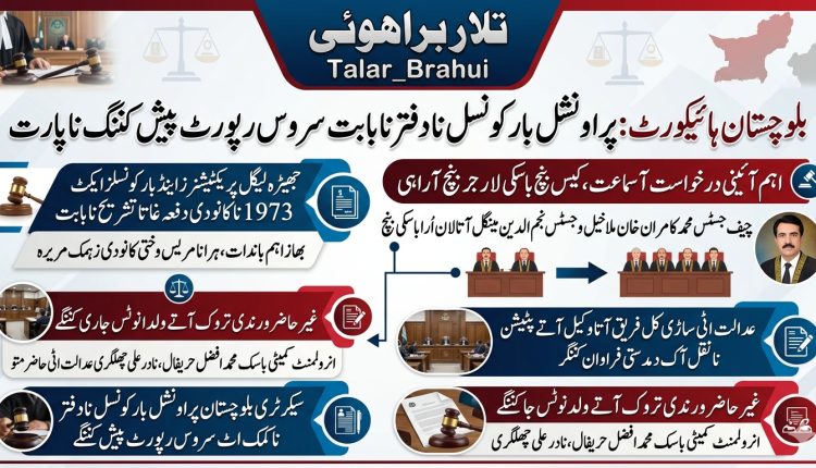 بلوچستان ہائیکورٹ: پراونشل بار کونسل نا دفتر نا بابت سروس رپورٹ پیش کننگ نا پارت